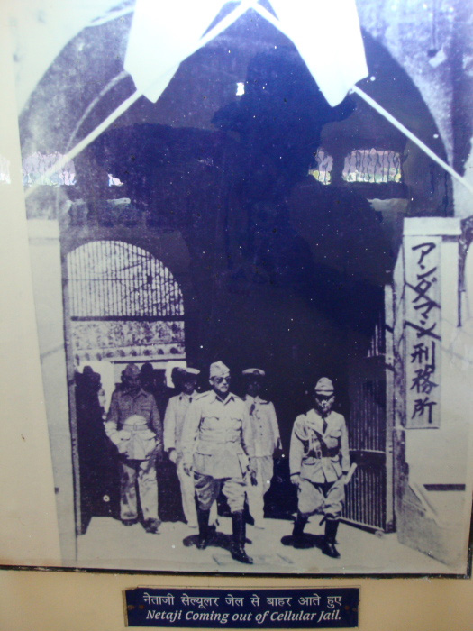 नेताजी सुभाष चंद्र बोस की सेल्यूलर जेल से बाहर आते हुए एक तस्वीर। इमेज सोर्स : Red Scarab